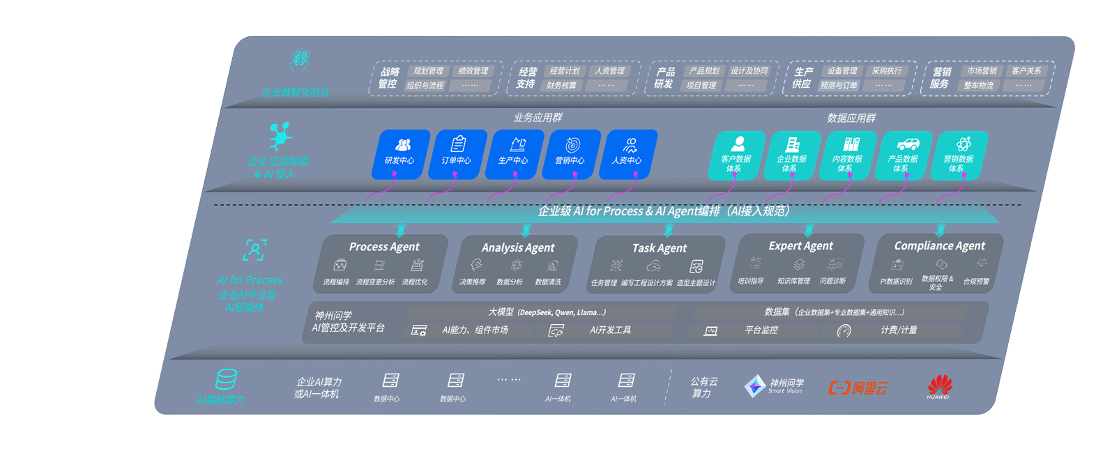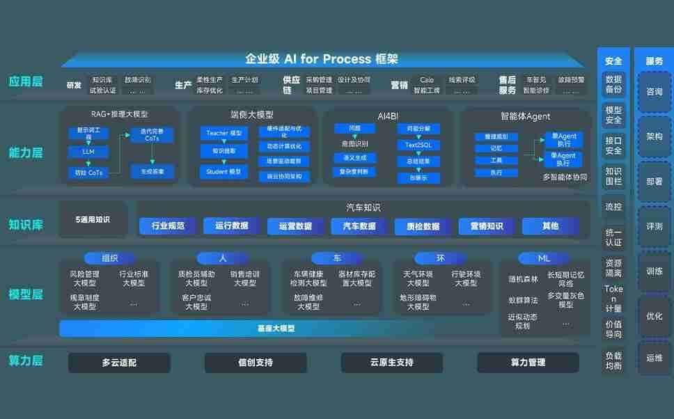 端到端的一站式AI工作空间深度融合了从企业战略规划到日常经营的全流程业务板块,,定向解决车企内部领域多、、部门多、、、链条长、、场景碎片化等难题,,,,支持车企快速构建以AI为核心的生产力写作体系,,,实现任务执行与AI能力的无缝集成与交互